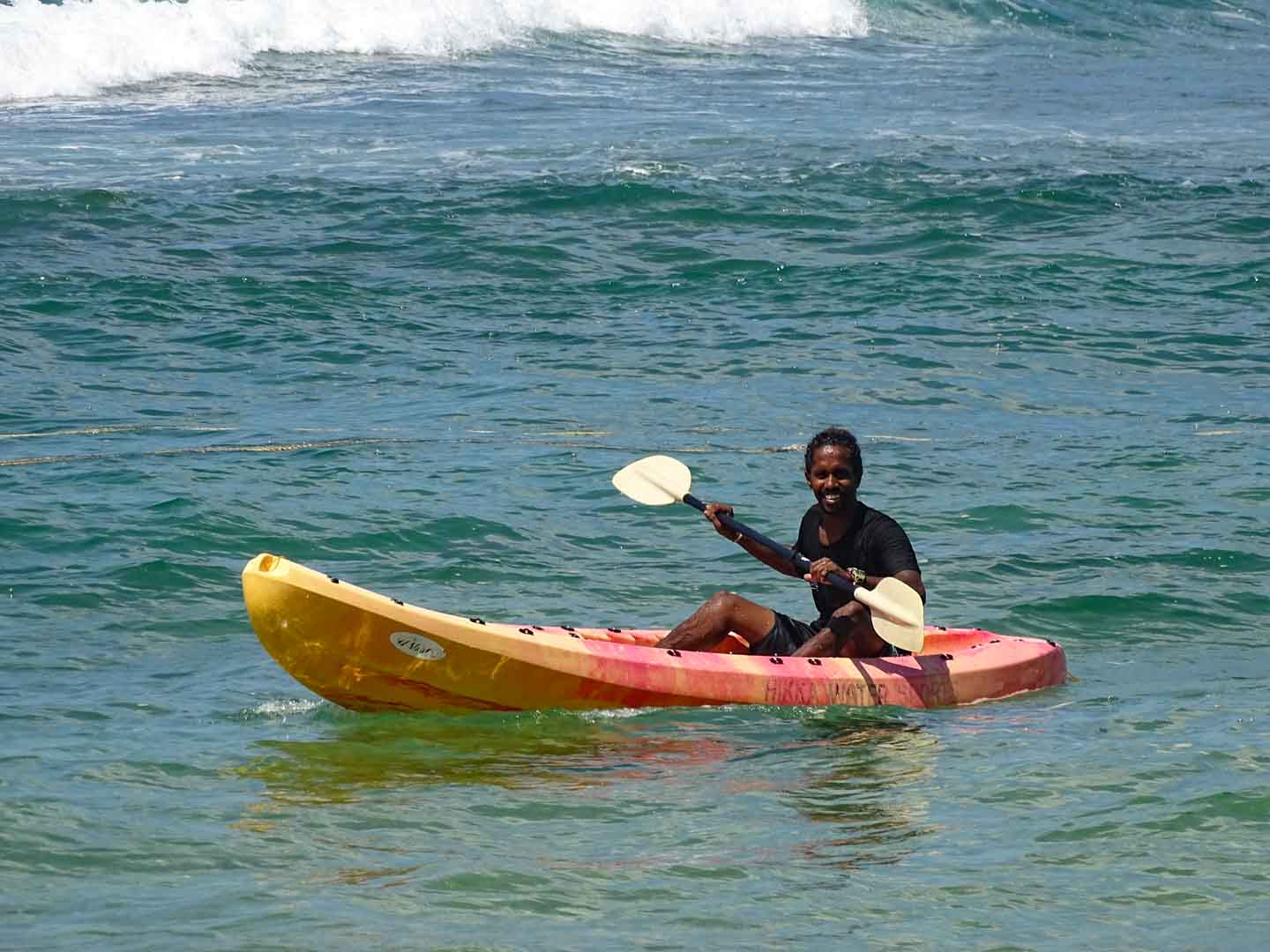 Now Hikkaduwa is famous for sea kayaking December to March sew is not heavy . So lot of travelers like to do sea kayaking. It is a different activity. We have single pedal boats for rent .